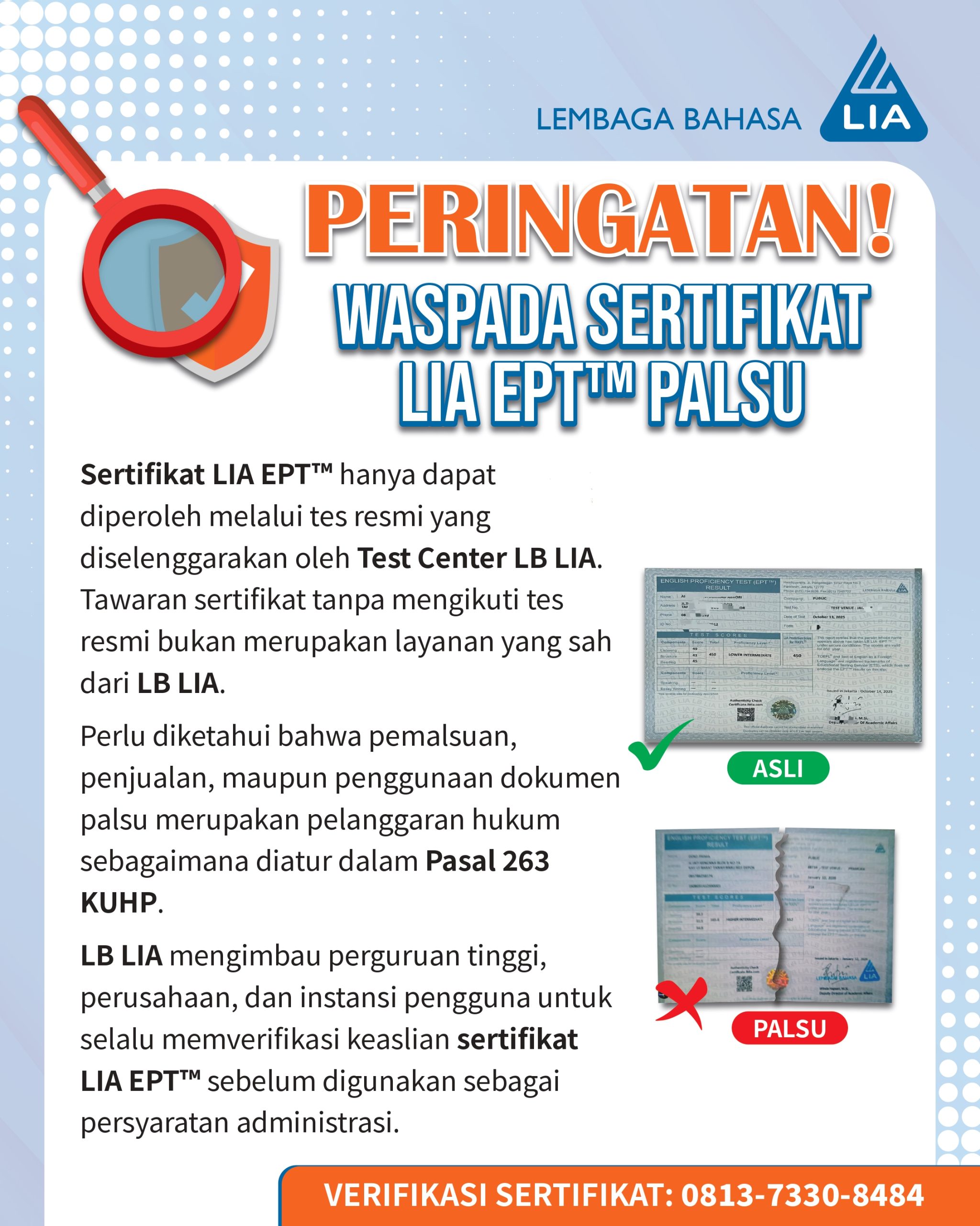 LIA Online Test for the EPT (English Proficiency Test)